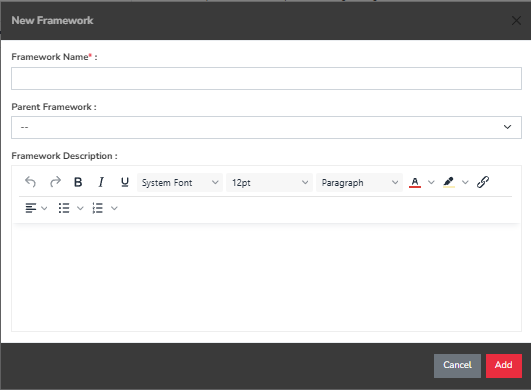 In the new “Framework Description” field, please define a description for your framework.