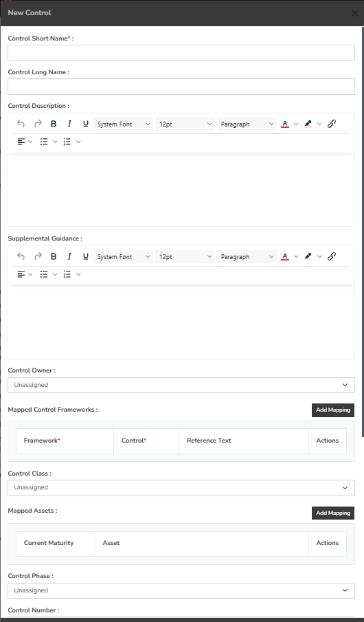 You can also include additional information you wish to record, such as the “Control Long Name,” “Control Description,” “Supplemental Guidance,” and “Control Number.”