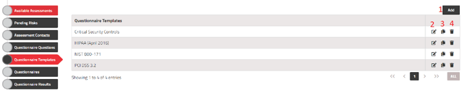 Delete – This option allows you to remove the template. Deleting a template will not affect any questionnaire results collected prior to its deletion. Additionally, deleting a template will not remove the questions associated with it. If your goal is to also delete the questions, it's advisable to first remove them from the Questionnaires Question menu while filtering for the template you wish to delete.
