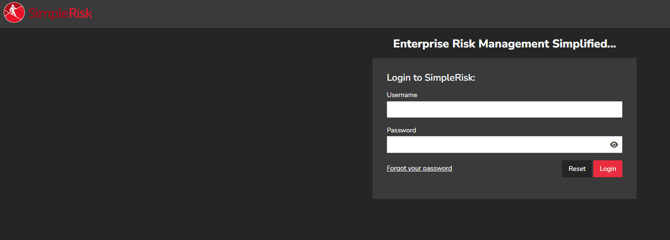 You should now have performed all of the steps you need for SimpleRisk to be upgraded to the latest version. The upgrade script shouldn’t work anymore for this version, but it wouldn’t be a bad idea to remove it just in case. Now is the moment of truth where we hopefully get to see if all of your hard work paid off. You now need to point your web browser to the URL where SimpleRisk would be installed. It might be something like https://192.168.0.1/simplerisk or maybe https://localhost/. This would be based on how your web server is configured and whether you left the SimpleRisk files in the “simplerisk” directory or not. You will know that you’ve got the right page when you see something like this: Login with your username and password and begin enjoying the latest version of SimpleRisk!